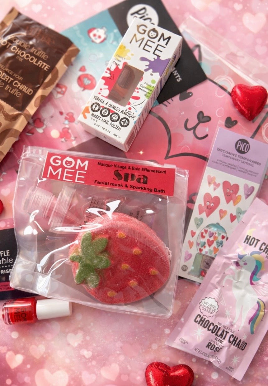 -LE COQUET: Autocollant Saint-Valentin + Duo masque et bombe de bain GOMMEE